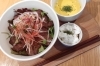 ランチメニューのイチオシは、さっぱり野菜と牛ハラミ肉のライスボウル!